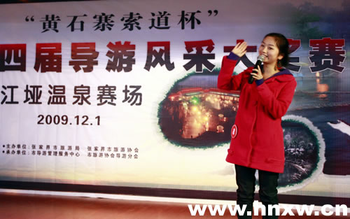 中新湖南網(wǎng)12月1日電(通訊員 鄧道理 周傳友)12月1日,張家界市第四屆“黃石寨索道杯”導(dǎo)游風(fēng)采大獎(jiǎng)賽決賽活動(dòng)在江埡溫泉度假村舉行,初賽勝出的20名優(yōu)勝選手進(jìn)行了當(dāng)日的激烈角逐,通過專家評(píng)委現(xiàn)場(chǎng)評(píng)分,汪華麗、杜爽、雷青青等10名選手最后當(dāng)選為本次活動(dòng)的優(yōu)秀導(dǎo)游員。