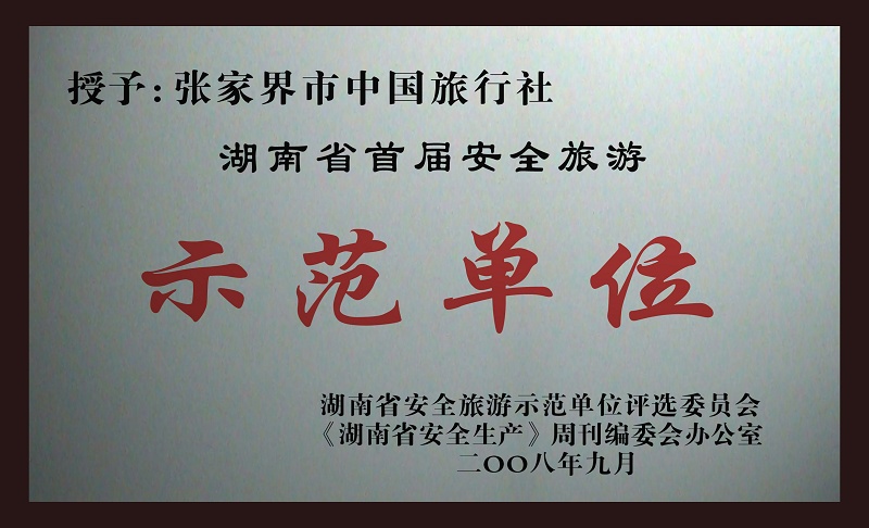 12、2008年9月被湖南省安全旅游示范單位評(píng)選委員會(huì)授予《湖南省首屆安全旅游示范單位》