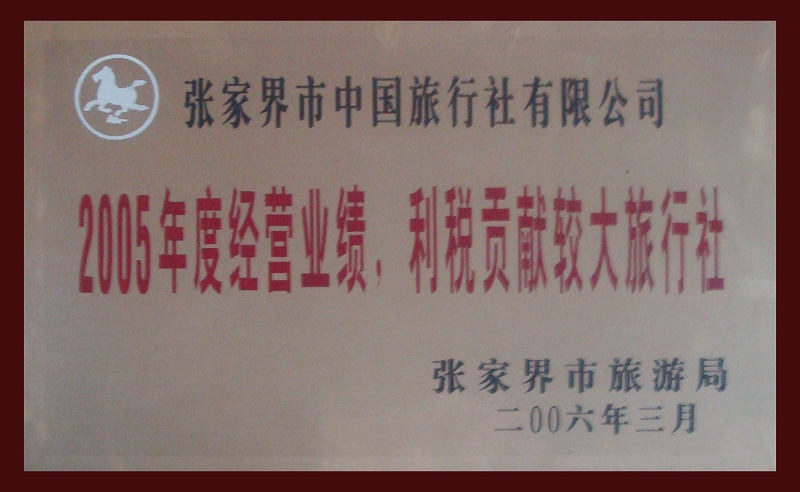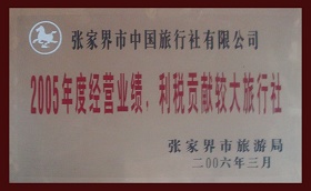 6、2006年3月被張家界市旅游局評(píng)為《2005年度經(jīng)營(yíng)業(yè)績(jī),利稅貢獻(xiàn)較大旅行社》