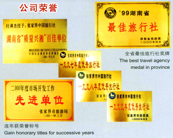 15、2009年5月被張家界市旅游局評(píng)為《2008年度優(yōu)秀旅行社》