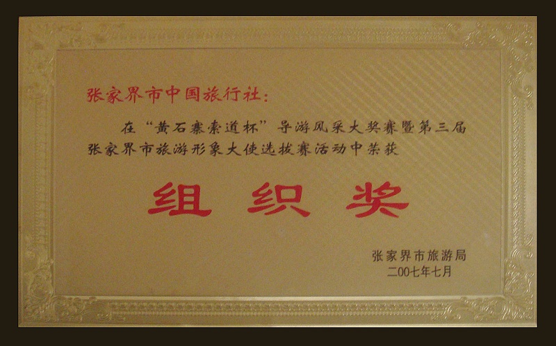 9、2007年7月在張家界市旅游局舉辦的"黃石寨索道杯"導(dǎo)游風(fēng)采大賽暨第三屆張家界市旅游形象大使選拔賽活動(dòng)中,榮獲組織獎(jiǎng)