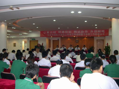 張家界國(guó)際大酒店為中外合資旅游酒店。酒店總投資約1.38億,總占地面積為53畝;主樓高十層,主樓建筑面積為20000余平方米。其設(shè)有標(biāo)準(zhǔn)客房、豪華客房、商務(wù)樓層及總統(tǒng)套間,共226間(套);與之配套的有中餐廳、西餐廳、風(fēng)味廳、酒吧、咖啡廳、宴會(huì)廳、多功能國(guó)際會(huì)議中心、商務(wù)中心、美容美發(fā)中心、桑拿按摩中心、豪華歌舞廳、室外游泳池、網(wǎng)球場(chǎng)、球藝室及棋牌室等各類娛樂(lè)服務(wù)設(shè)施,一應(yīng)俱全。主樓前設(shè)有大型停車場(chǎng)、假山及瀑布。綜合樓高七層,內(nèi)有行政辦公室、員工宿舍樓、洗衣房和行政倉(cāng)庫(kù),而員工福利樓(員工餐廳、醫(yī)務(wù)室及娛樂(lè)室)和設(shè)備樓各一棟。