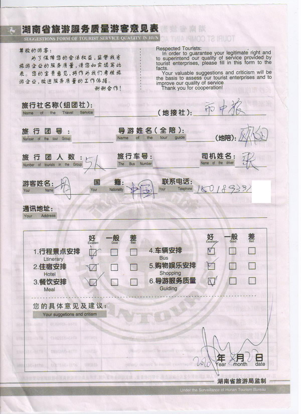 香港胡先生一行5人旅游質量回饋
