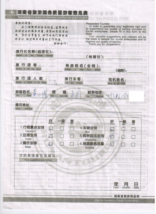廣州黃小潔一行5人旅游質(zhì)量回饋