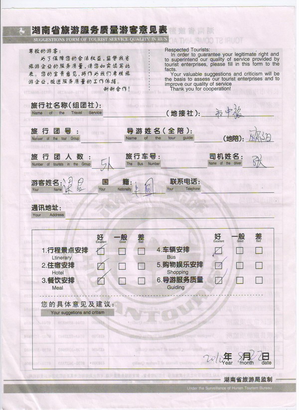 香港梁君一行5人旅游質(zhì)量回饋