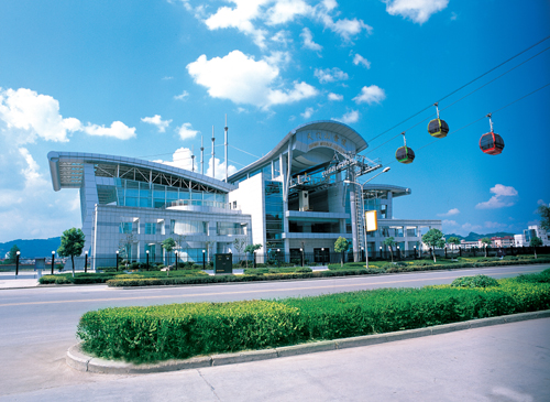 天門山索道全長7455米,是世界最長的高山客運索道。整條索道以張家界市中心的城市花園為起點,直達天門山頂?shù)脑伎罩谢▓@,猶如一道彩虹飛渡人間天上,又似一條巨龍騰翔素云蒼穹,依山籍壁,恢宏壯觀。索道沿途經(jīng)過現(xiàn)代城市風光,秀美田園風光以及雄奇高山風光,堪稱世界第一空中移動觀景長廊。