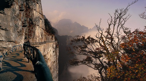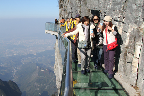 2、挑戰(zhàn)東方“天空之路”—天門山玻璃棧道: