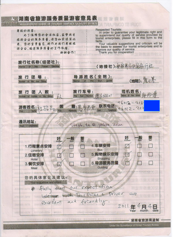 馬來西亞杜先生一行6人旅游質(zhì)量回饋
