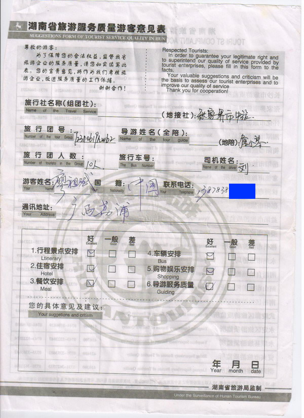 廣西荔浦廖先生10人旅游質(zhì)量回饋