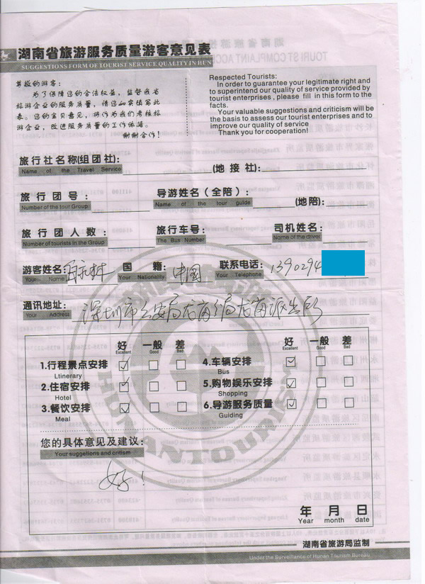 深圳白先生一行10人旅游質(zhì)量回饋