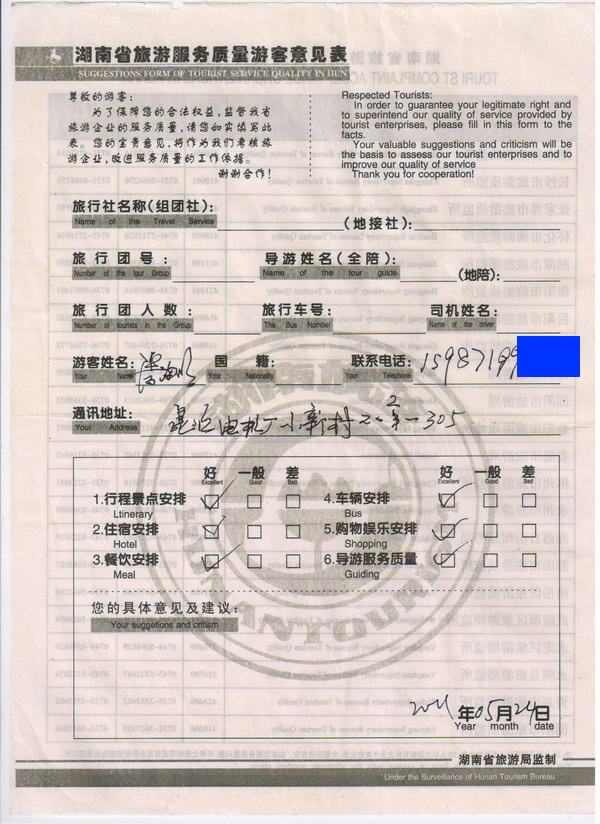云南唐先生一行8人旅游質(zhì)量回饋: