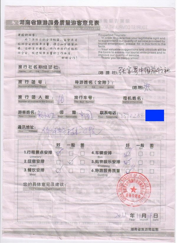佛山賴小姐一行16人旅游質(zhì)量回饋