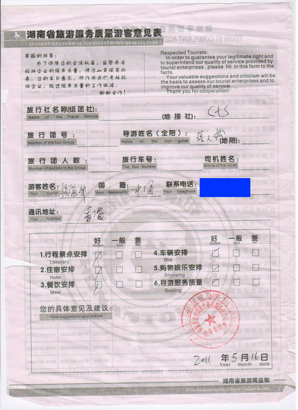 香港楊小姐一行6人旅游質(zhì)量回饋