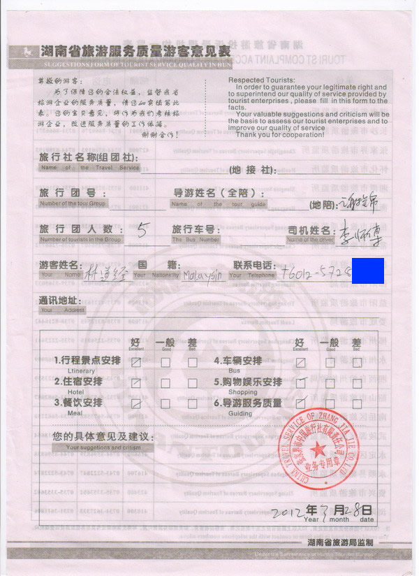 馬來(lái)西亞林先生一行5人旅游質(zhì)量回饋