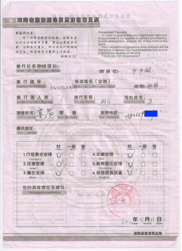 河北高先生一行6人旅游質(zhì)量回饋