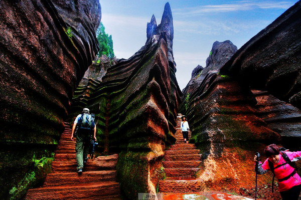 紅石林國(guó)家地質(zhì)公園位于湘西自治州宋祖英的家鄉(xiāng)——古丈縣境內(nèi)。紅石林國(guó)家地質(zhì)公園是張家界至鳳凰旅游黃金走廊上的一顆明珠,是中國(guó)唯一的紅色碳酸鹽石林,與“芙蓉鎮(zhèn)”隔酉水河相望,景區(qū)集巖溶、峽谷、溶洞、湖泉、瀑布于一體,具有極高的地質(zhì)科研、美學(xué)觀賞和旅游景觀價(jià)值,被譽(yù)為“武陵第一奇觀”。2005年被國(guó)土資源部授予國(guó)家地質(zhì)公園稱號(hào),2006年被評(píng)為山水人文類的“新瀟湘八景”之一的“酉水畫(huà)廊”,2013年榮膺“中國(guó)最美地質(zhì)公園”評(píng)選第一名,2013年被評(píng)為國(guó)家4A級(jí)旅游景區(qū)。