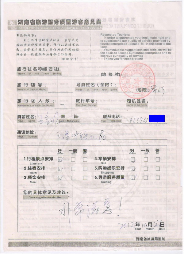 河南王先生一行7人旅游質(zhì)量回饋