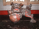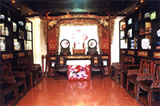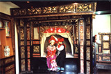 【中堂講解】現(xiàn)在您所走進(jìn)的是傳統(tǒng)土家建筑的第一間房子,我們稱之為中堂或者堂屋。堂屋是個(gè)莊重.講禮的地方,祭祀,婚葬嫁娶一類的大事都要在這兒興行。堂屋正中是神龕,一般土家都得供奉相當(dāng)豪華精致的神龕,最上面雕的是二龍戲珠,兩邊是丹鳳朝陽,中間是福壽祿三星高照,土家人早晚都在這里朝拜。湘西土家人是多神論的,雖然沒有自己正式的宗教,但是有一定雛形的由巫師主持的原紿教——土老司。土家的土老司為”梯瑪“。做土老司的主要內(nèi)容就是祭祀土王,敬奉土家祖先。如果您有興趣,也可以在這兒 下您的心愿,接受土家神靈的庇護(hù),拜上拜一拜,保您心想事成同,健康長壽。