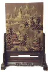 【鎮(zhèn)館之寶——五彩石雕講解】這是一塊用天然五彩石雕雕刻而成的一幅明代晚期的作品,反映的是宋代人日常生活的一幅“漁樵耕讀圖”。其中可見漁夫在水中撒網(wǎng),樵夫在山中伐木,橋面上有牧童牽牛,窗臺上可見書生捧書,作者根據(jù)五彩石的自然顏色,布局精純,雕鏤細(xì)微,一尺之中包羅萬象。現(xiàn)在經(jīng)故宮愽物院的專家反復(fù)考證,認(rèn)為這塊五彩石雕具有極高的收藏價(jià)值,受到了包括沈從文.黃永玉 等大師的高度贊譽(yù),被譽(yù)為秀華山館的“鎮(zhèn)館之寶”。 |