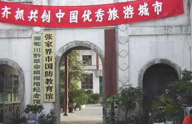 歡迎各位來賓到湘鄂川黔革命根據(jù)地紀(jì)念館參觀。這里原系民國7年(公元1918年)芬蘭牧士建的天主 堂,3棟共15間木結(jié)構(gòu)平房,四周有磚墻環(huán)護(hù)。1934年11月24日,中國工農(nóng)紅軍二、六軍團(tuán)在任弼時(shí)、賀龍、肖克、王震等領(lǐng)導(dǎo)下,一舉解放大庸縣城,于26日成立臨時(shí)省委,12月1日在天主堂內(nèi)成立湘鄂川黔省革命委員會(huì),領(lǐng)導(dǎo)湘鄂川黔革命根據(jù)地31個(gè)縣的反圍剿斗爭(zhēng),沉重地打擊了國民黨反動(dòng)派和地方封建勢(shì)力,為中華民族的解放事業(yè)作出了卓越貢獻(xiàn),在中國人民革命斗爭(zhēng)史上寫下了光輝燦爛的一頁。為緬懷先烈功績(jī),弘揚(yáng)革命精神,中共張家界市永定區(qū)委和區(qū)政府于91年夏發(fā)動(dòng)募捐修復(fù)湘鄂川黔省委、省軍區(qū)、省革命委員會(huì)舊址,并新建紀(jì)念館,于1993年12月26日落成開館。 紀(jì)念館占地面積2800平方米,其中建筑面積1600平方米。東頭是三堵矮墻圍著的一棟木平房,三間小屋曾住過任弼時(shí)、賀龍、肖克,黑漆桌上的桐油燈作證,一代英杰曾在這里徹夜運(yùn)籌。西頭是可容納200余人的省委禮堂,當(dāng)時(shí)省委擴(kuò)大會(huì)和省直各部門的會(huì)議均在此召開,現(xiàn)已辟為將軍館,166位在湘鄂川黔革命根據(jù)地留下英雄足跡的新中國將帥的照片掛滿墻壁。紀(jì)念館大門左右,一字排開11間辦公室,當(dāng)年3大機(jī)關(guān)13個(gè)直屬部門均在此辦公。庭院正中是根據(jù)我國著名雕塑家潘鶴的作品《艱苦歲月》鑿制而成的一尊雙人石像,小紅軍抱著高過頭頂?shù)牟綐專蕾嗽跈M吹短笛的老紅軍膝頭,似在入神地傾聽。雕像后面是紀(jì)念館主樓,內(nèi)設(shè)三個(gè)展室,陳列著223幅大型圖片和100多件革命文物,再現(xiàn)了根據(jù)地的光輝斗爭(zhēng)史,反映了根據(jù)地軍民艱苦卓絕的革命歷程和高尚情操。肖克將軍為紀(jì)念館題寫了館名。 第一部分 湘鄂川黔邊根據(jù)地的初創(chuàng) 193年11月,由于王明“左”傾路線錯(cuò)誤和敵人的大舉進(jìn)攻,湘鄂西革命根據(jù)地全部喪失,紅三軍在湘鄂西中央分局夏曦、賀龍、關(guān)向應(yīng)的領(lǐng)導(dǎo)下不得不轉(zhuǎn)戰(zhàn)鄂川邊。 12月19日,湘鄂西中央分局聽湖北咸豐大村召開會(huì)議,決定“創(chuàng)建湘鄂川黔邊新蘇區(qū)”。此后,紅三軍在湘鄂川黔邊轉(zhuǎn)戰(zhàn),尋找立足點(diǎn)。 1934年5月,紅三軍西渡烏江,進(jìn)入貴州。6月19日,湘鄂西中央分局在貴州沿河楓香溪召開會(huì)議,決定在黔東創(chuàng)建根據(jù)地。7月21日黔東特區(qū)革命委員會(huì)成立。黔東根據(jù)地的建立,為紅二、六軍團(tuán)會(huì)師和湘鄂川黔根據(jù)地的形成創(chuàng)造了條件。 第二部分 湘鄂川黔邊根據(jù)地的全面形成 1934年10月,紅六軍團(tuán)經(jīng)過艱苦轉(zhuǎn)戰(zhàn),進(jìn)入黔東,24日,與紅三軍在印江木黃勝利會(huì)師。會(huì)師后紅三軍恢復(fù)紅二軍團(tuán)番號(hào),兩軍團(tuán)聯(lián)合行動(dòng),由賀龍、任弼時(shí)、關(guān)向應(yīng)統(tǒng)一指揮。紅二、六軍團(tuán)會(huì)師后,為了策應(yīng)中央紅軍長(zhǎng)征與建立湘鄂川黔邊根據(jù)地,決定發(fā)動(dòng)湘西攻勢(shì)。 1934年10月28日,紅二、六軍團(tuán)從四川南腰出發(fā),向湘西挺進(jìn)。11月7日,攻克永順縣城,湘敵何鍵急令湘西軍閥陳渠珍派兵堵剿,陳糾集三個(gè)旅,約一萬人的兵力向永順撲來。紅軍決定采取誘敵深入、聚而殲之的作戰(zhàn)方針,主動(dòng)放棄永順縣城,退至城北90里的十萬坪地區(qū)設(shè)伏。16日黃昏,尾追之?dāng)尺M(jìn)入伏擊圈,我軍奮起痛擊,殲、俘敵3000余人。我軍乘勝追擊,24日占領(lǐng)大庸、桑植。12月7日,進(jìn)擊沅陵,17日包圍常德,攻下桃源。 由于湘西攻勢(shì)的勝利,促進(jìn)了新區(qū)工作的發(fā)展,紅二、六軍團(tuán)控制了永順、大庸、桑植的大部和龍山、保靖、桃源、慈利、常德等縣的一部,并占有大庸、桑植、永順等縣城,開辟了湘鄂川黔邊根據(jù)地。 第三部分 根據(jù)地省委的成立并領(lǐng)導(dǎo)人民開展革命斗爭(zhēng) 1934年11月26日,奉中共中央電示,在大庸成立了中共湘鄂川黔省委,任弼時(shí)為省委書記,賀龍、關(guān)向應(yīng)、夏曦、王震、肖克及張子意、劉士杰(后叛變)、周玉珠為省委委員,同時(shí)成立省軍區(qū),賀龍為軍區(qū)司令員,任弼時(shí)為政委。還成立了省革命委員會(huì),賀龍為主席,夏曦、朱長(zhǎng)清為副主席。至此,以大庸為中心的湘鄂川黔革命根據(jù)地正式形成。 蘇區(qū)省委成立之后,即著手領(lǐng)導(dǎo)開展建黨建政、土地革命和擴(kuò)紅等項(xiàng)工作,同時(shí)還進(jìn)行了必要的經(jīng)濟(jì)、文化教育、衛(wèi)生等方面的建設(shè),并取得了一定的成果,推動(dòng)了根據(jù)地的鞏固和發(fā)展。 第四部分 反圍剿的激烈戰(zhàn)斗 湘鄂川黔根據(jù)地的建立和發(fā)展,特別是紅軍的主動(dòng)出擊,給國民黨政府造成了新的威脅,蔣介石驚恐萬分,下令調(diào)集湘鄂兩省的軍隊(duì),集中了11個(gè)師又4個(gè)旅,共40多個(gè)團(tuán),約11萬人的兵力,編成6個(gè)縱隊(duì),在地方保安團(tuán)的配合下,對(duì)根據(jù)地發(fā)動(dòng)“圍剿”。 針對(duì)敵人的瘋狂
