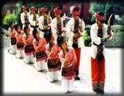 擺手舞是土家族最有影響的大型歌舞,帶有濃烈的祭祀色彩。歌隨舞生,舞隨歌而得名!逗鬂h 書》稱擺手舞起源于古代的巴渝舞。《晉書樂志》認為舞曲四篇中就有“矛渝”,“弩渝”是離不開武器的,故為古代一種戰(zhàn)舞。巴人跟隨周武王伐紂,“歌舞以凌,殷兵大潰”;秦末劉邦反秦,巴人以巴渝舞勇挫秦兵,劉邦認為有巴渝舞之遺風;明嘉靖年間土司兵抗擊倭 寇,大跳擺手舞,乘倭寇不備,大敗倭寇,立下了赫赫戰(zhàn)功。后來,這種戰(zhàn)舞逐漸演變成土家祭祀活動,各土司轄地紛紛建擺手堂。清代《永順府志》載:“每歲正月初三至十七日,男女齊集,鳴鑼擊鼓,跳舞唱歌,名曰擺手。