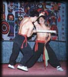 (7)胸部打刀:將鋒利大刀刃口置于胸部肌肉上,用一根拳頭粗木棒猛擊刀背,至棒斷而胸部無(wú)傷。 |