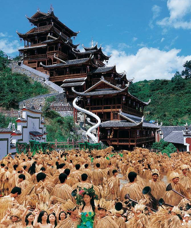 張家界土司城,南倚天門,北靠澧水,永定第末代土司覃純一被朝廷封為世襲千總后建造,距今近三百年歷史,是西南地區(qū)唯一保存完好的古城。土司城占地120多畝,集吊腳樓群,走馬轉(zhuǎn)角樓群為一體,是土家族古代文明的發(fā)祥地和凝聚地。城內(nèi)遺存著大量的珍貴文物,素有“南方紫禁城”之稱。2002年建筑奇觀“九重天吊腳樓”和“千人茅古斯”一并載入世界吉尼斯紀(jì)錄。2003年被列入了國家AAAA級(jí)景區(qū)、張家界旅游精品線路。是來張家界考察的國家領(lǐng)導(dǎo)人和藝術(shù)界人士的必到之處。很多專家學(xué)者參觀土司城后紛紛感慨“不到土司城、不懂土家人”。
