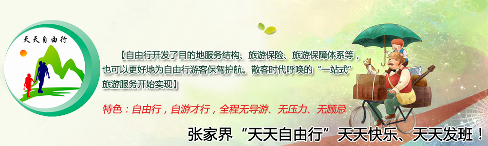 “天天自由行”是由(張家界市中國旅行社、張家界海外國際旅行社有限公司、張家界中世國際旅行社有限公司、張家界天馬國際旅行社有限公司、張家界中青旅國際旅行社有限公司、張家界市青年旅行社有限公司、張家界湘西青年國際旅行社有限公司、中國旅行社總張家界公司等35家旅行社)共同開發(fā)的張家界新型旅游產(chǎn)品,我們是根據(jù)當前旅游的發(fā)展趨勢,客戶群體所需求而進行;“天天自由行”產(chǎn)品自由度和豐富度將是客戶的主要訴求;同時,“天天自由行”也將主張服務(wù)能力的回歸;“天天自由行”張家界暢游無極限! 隨心而行,從這里開始! “天天自由行”帶給你不一樣的輕松和驚喜!